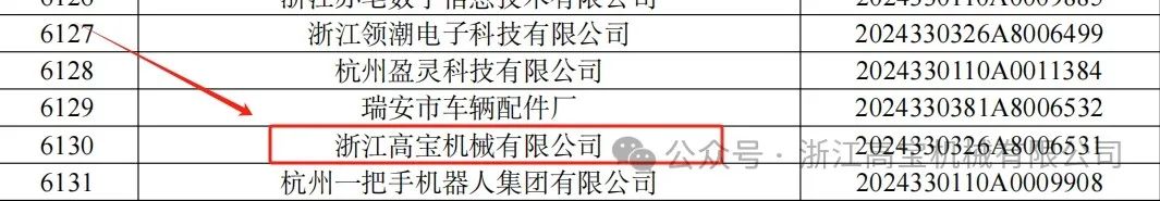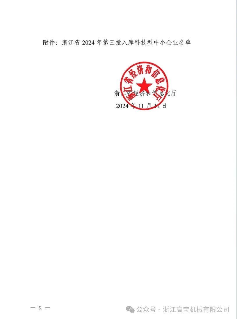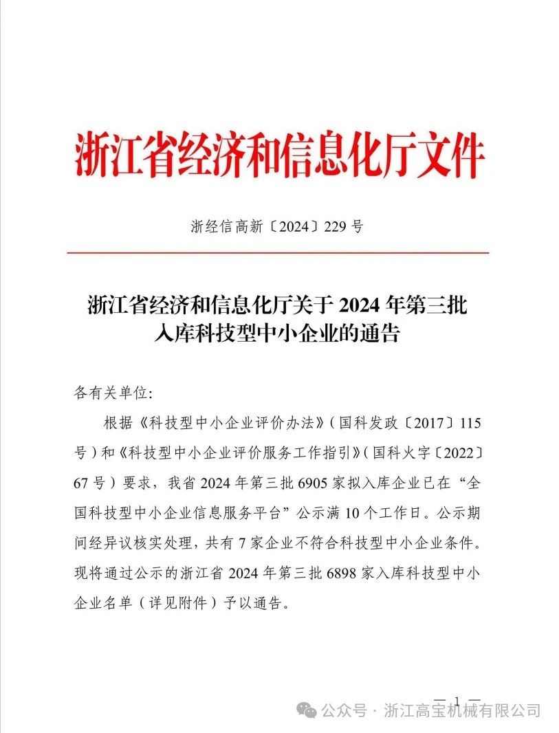 浙江高寶機(jī)械有限公司入庫科技型中小企業(yè)